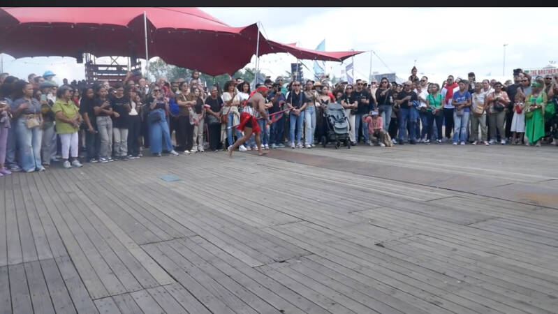 Cakalele alifuru bij debinnenkomst van mijn vriend en tevens de president in ballingschap van de RMS John Wattilete in Capelleaan den IJssel