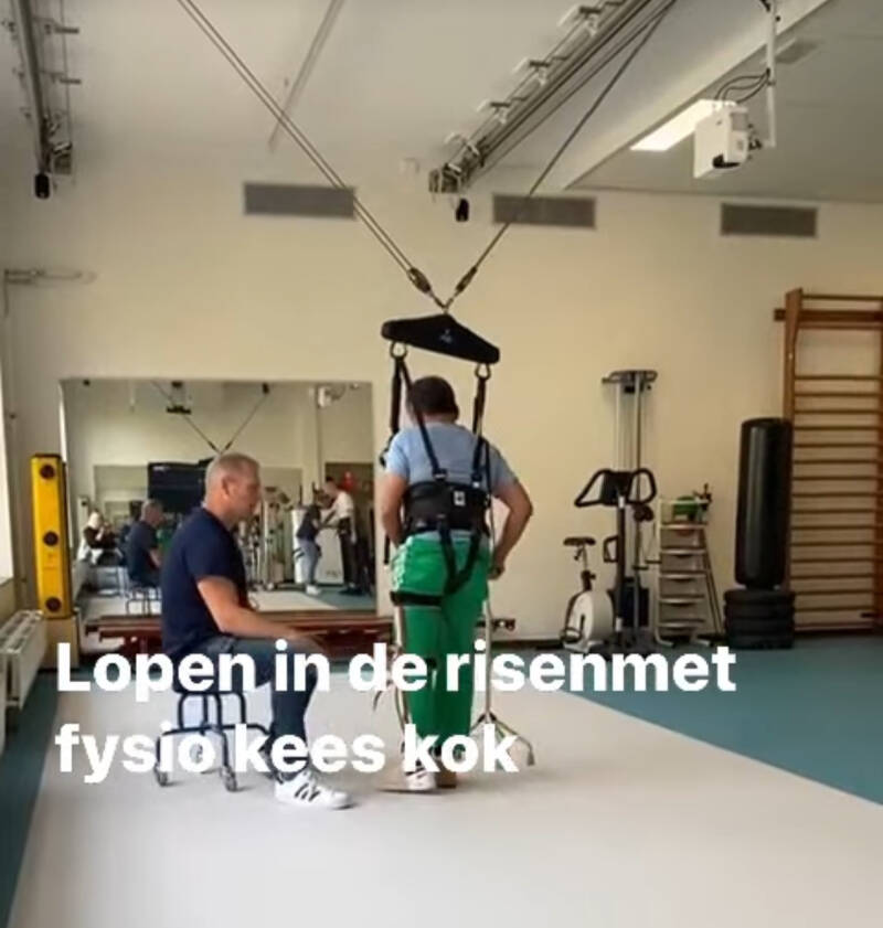 ik ga hiier op de maandag en donderdag naar toe . Hier wordt veel aandacht beteed aan het lopen en krachttraining voor de benen en de armen. Op verzoek van de revalidatiearts van hetSpaarnegasthuis krijg ik ook veel cardio-oefeningen, zoals lopen op de loopband en handbiken. Verder word ik één keer in deweek doorbewogen, omdat ik veel last heb van spasmes in mijn linkerbeen en linkerarm.