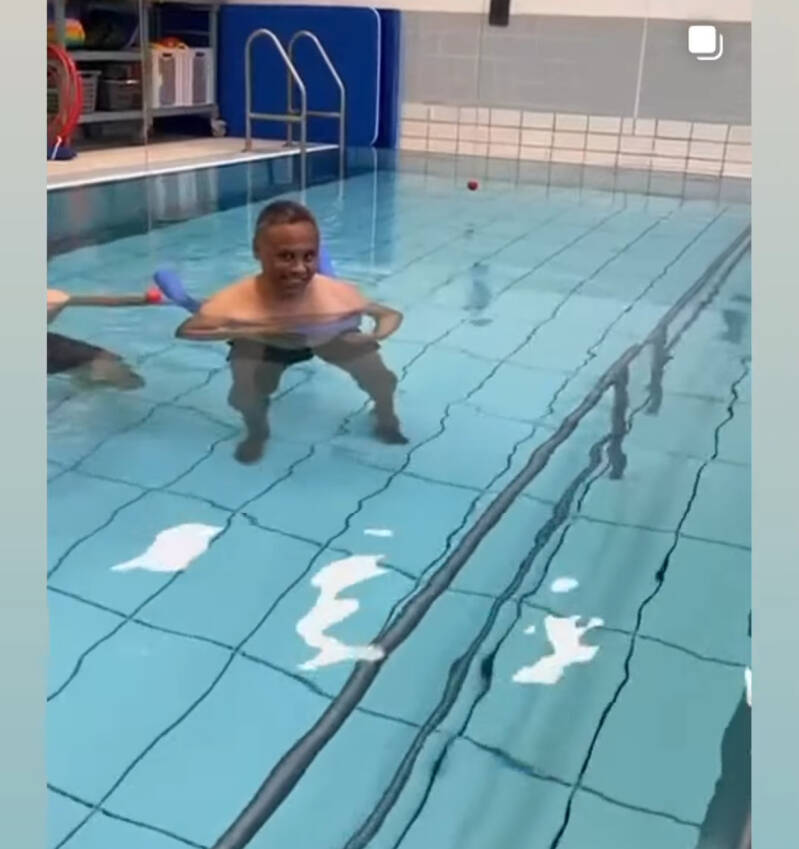 Eerste keer zwemmen tijdens fysio in het zwembadvan het Soaarnegasthuis in Hoofddorp