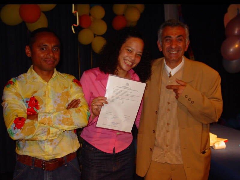 Mijn eerste diploma-uitreking als mentor met collega Huseyin Evrengun en Abigail Coutinho