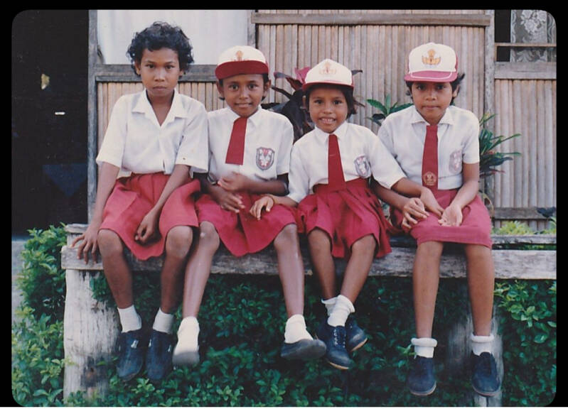 De eerte keer naar Maluku met mijn vriendin Hetty Peeters in 1987. Mijn nichtjs Maätita zitten voor mijn huis in kampong Suli, waar mijn vader geboren en getogen ia.