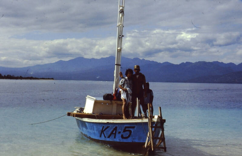 Aankommst in de haven van Ambon na een zesdagse bootreis van Jakarta naar Ambon met de Pelni in 1987 met mijn vriendin Hetty Peeters