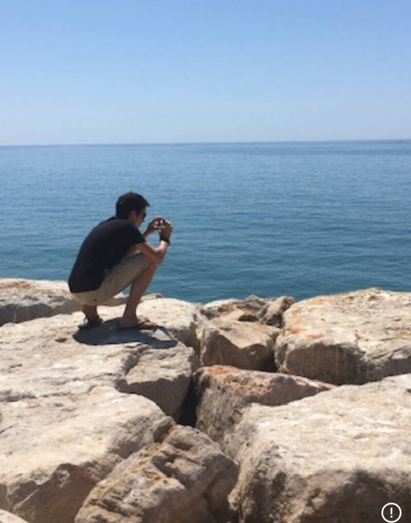 Mijn oudste zoon Tobias probeert een omhaal te doen bij Maria's beach in de Algarve