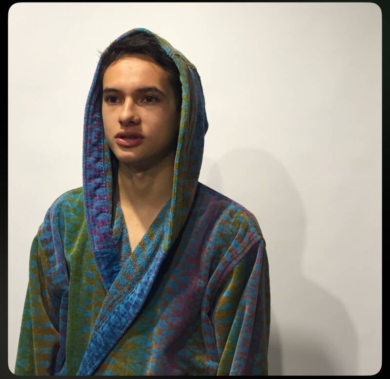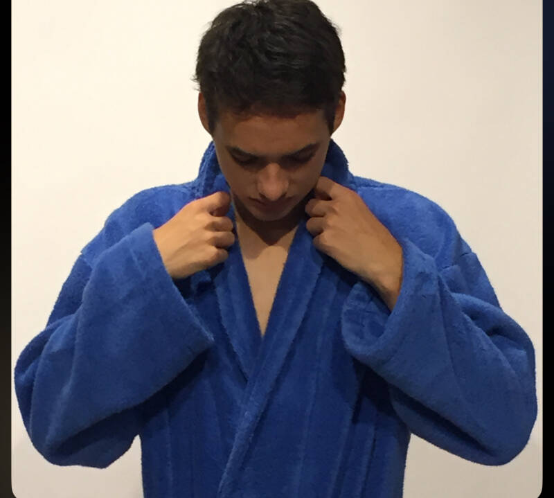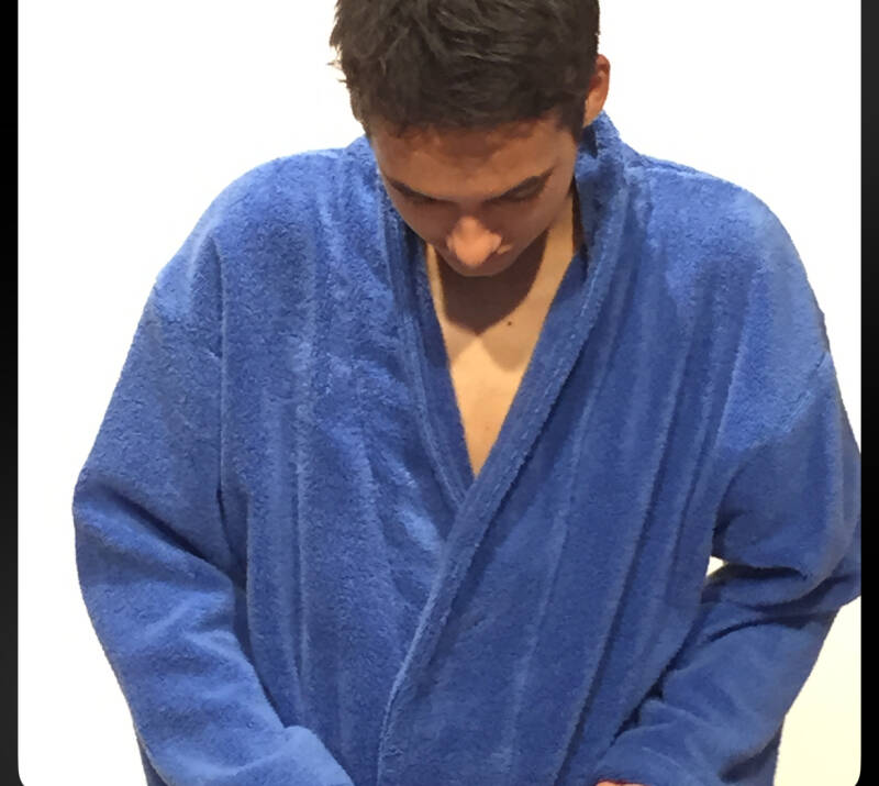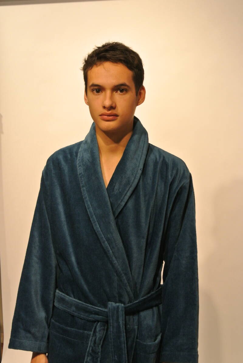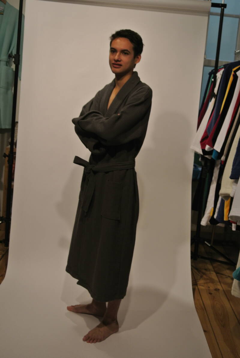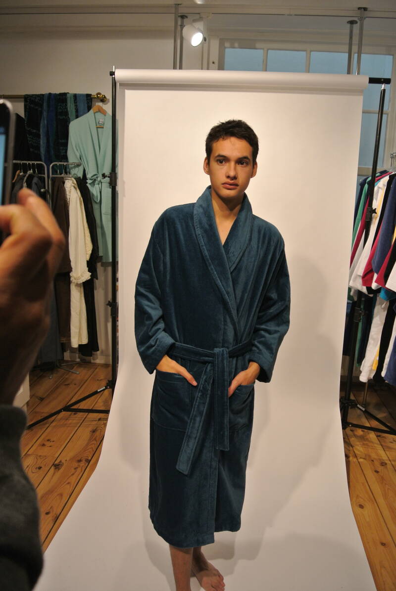 Finn staat model voor de Badjassenwinkel van mijn bestie Monique Schichart