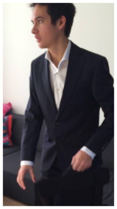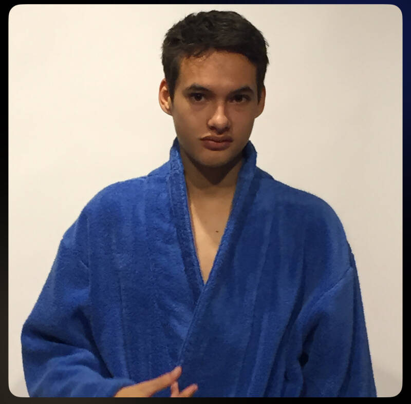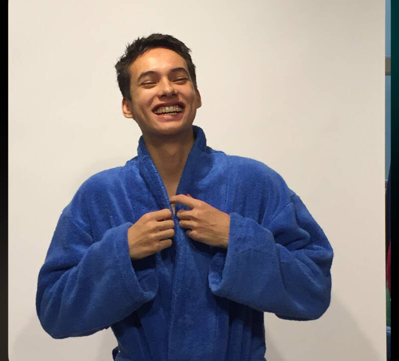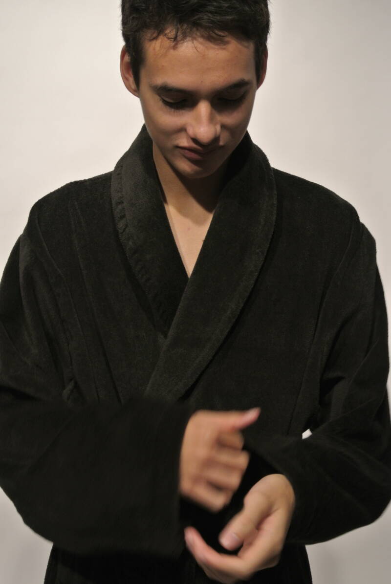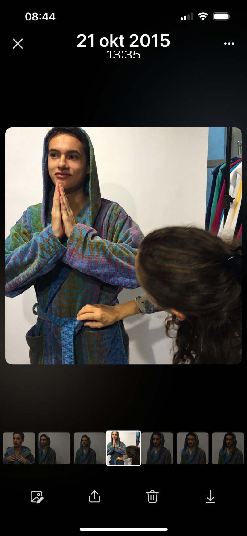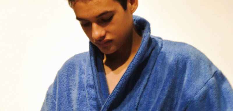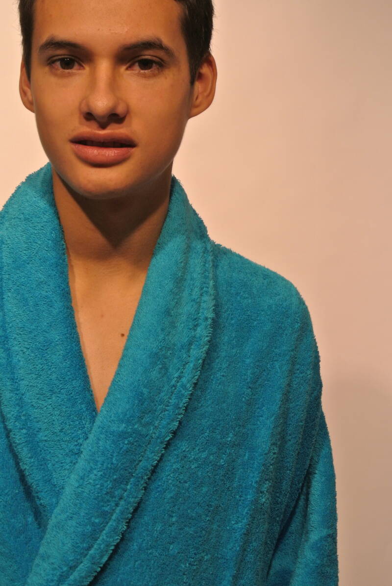 Finn staat model voor de Badjassenwinkel van mijn bestie Monique Schichart