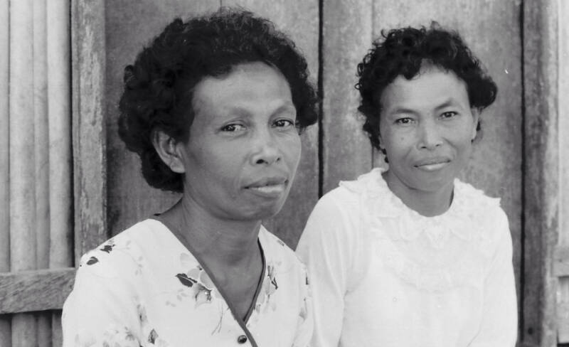Mijn moeder(oranje rok) en haar nicht op Ambon Tuhahaha