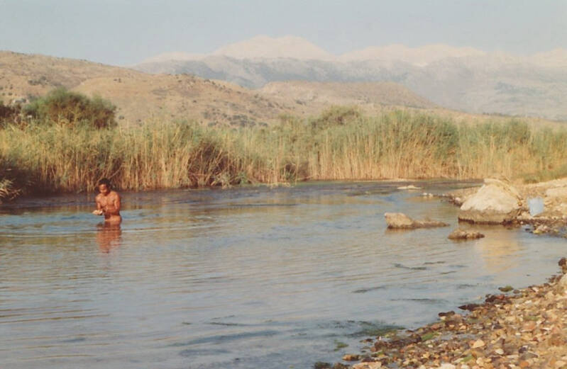 Wasswn in de heilge rivier Lorihua, die vanuit de bergen dwars door Suli stroomt1987
