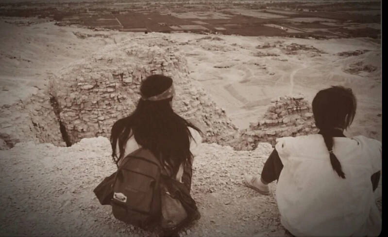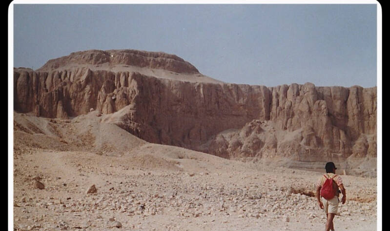 Egypte1992 mijn vriend Erno Pieter en zijn vriendin Emmanuelle Maridjan-Koop kijken over the valleyof kings
