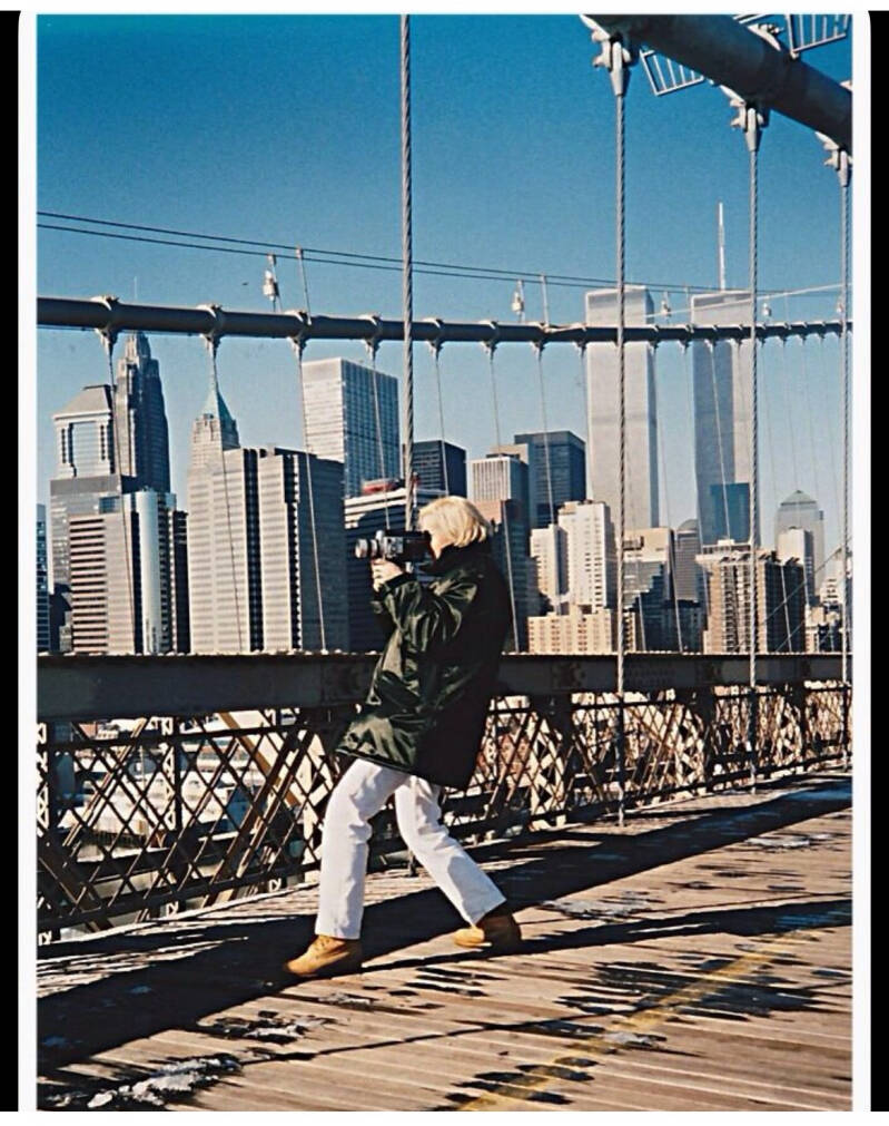 New York -Tilly op deBrooklynbridge met een 8mm.camera1996