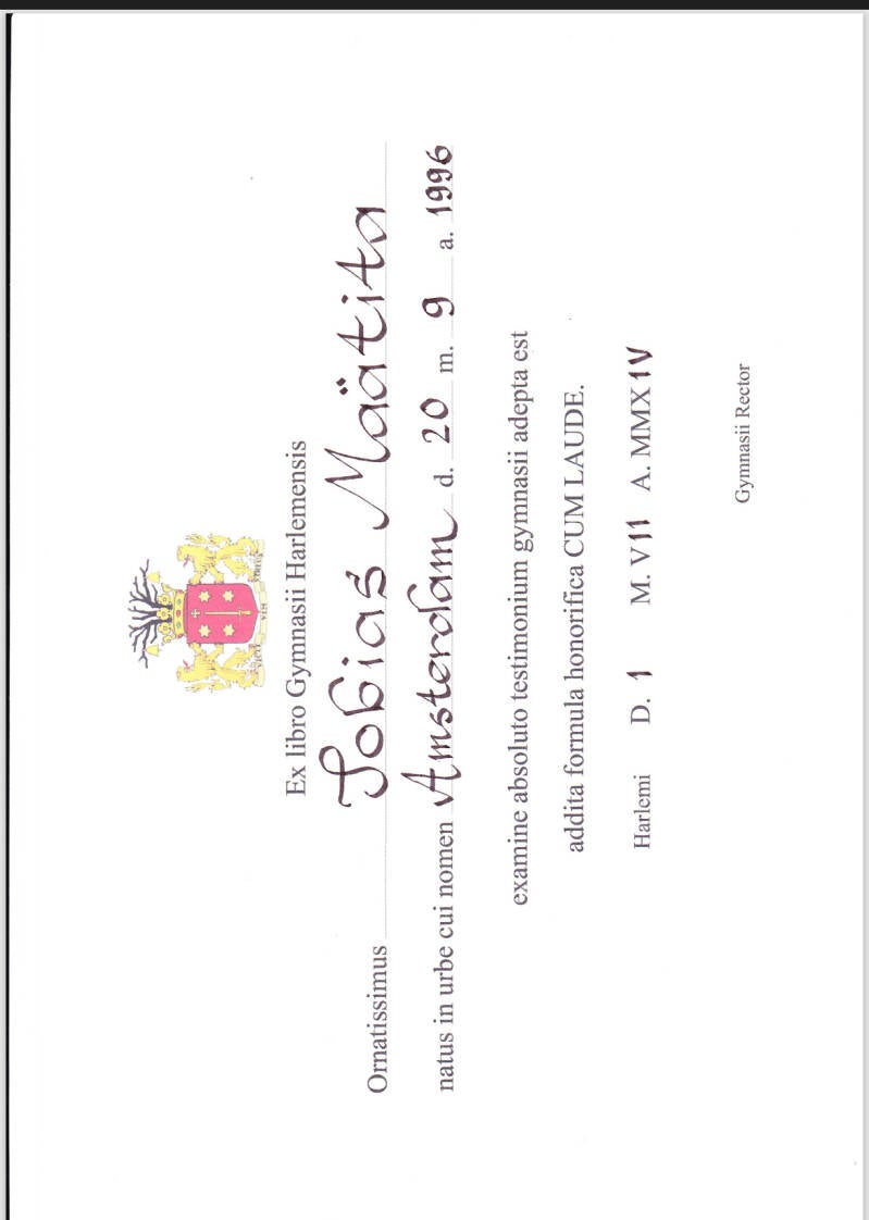 Diploma-uitreiking Tobias@Stedelijk gymnasium Haarlem